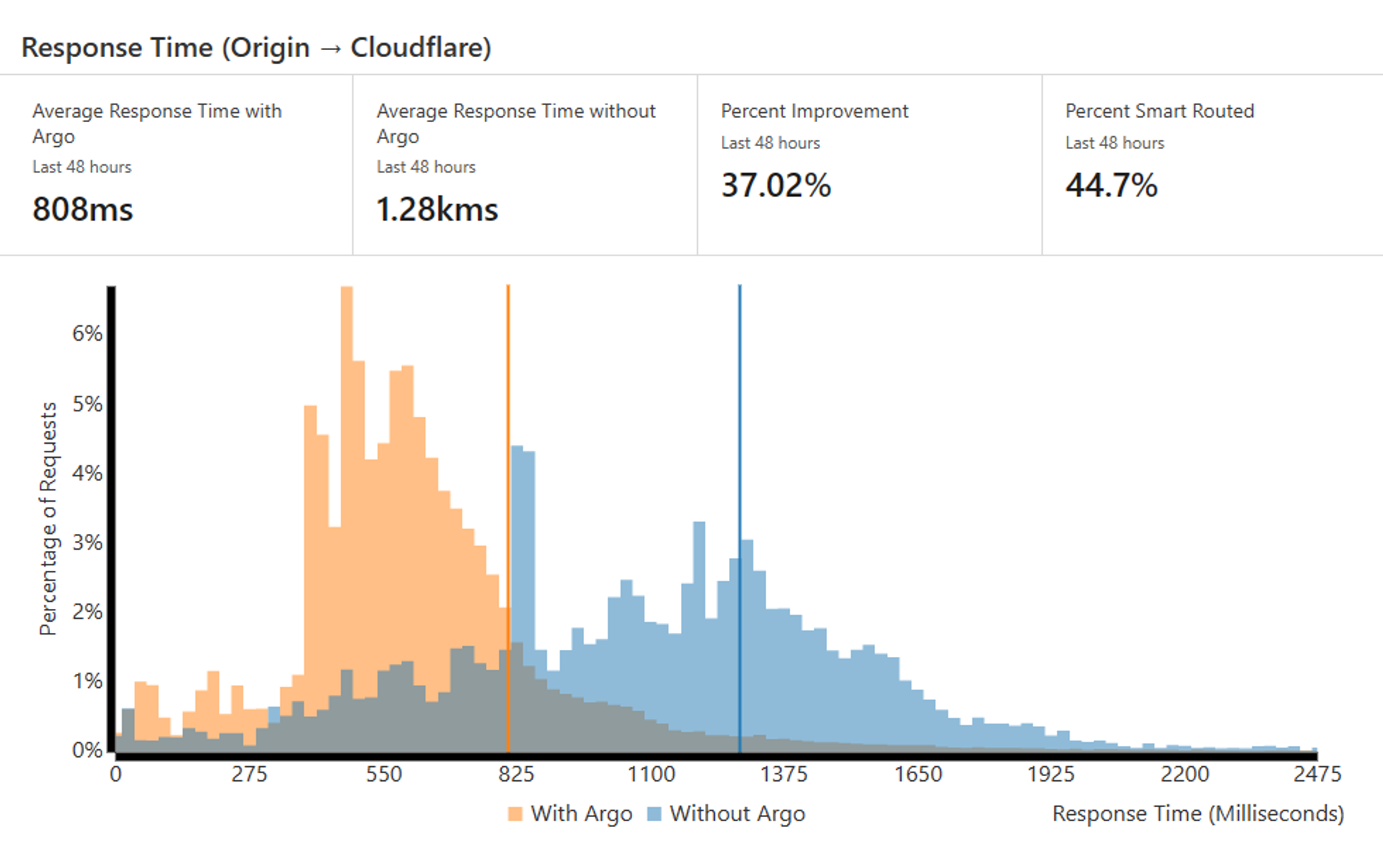 Take this: Argo’s smart routing handled 44.7% of our requests, shaving off 37.4% from the response time.