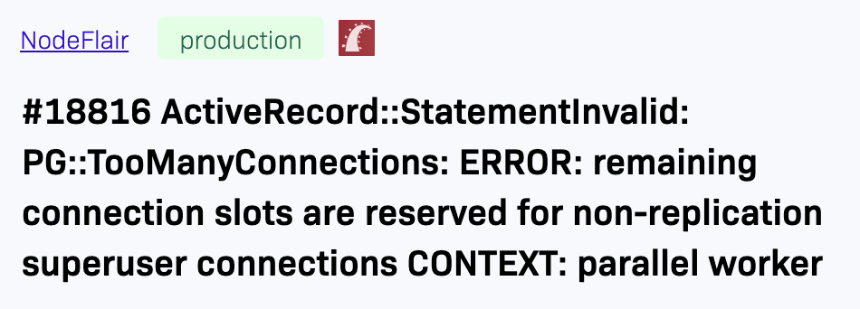 Then, one day, our application crashed, and I received this notification from our error logging software: