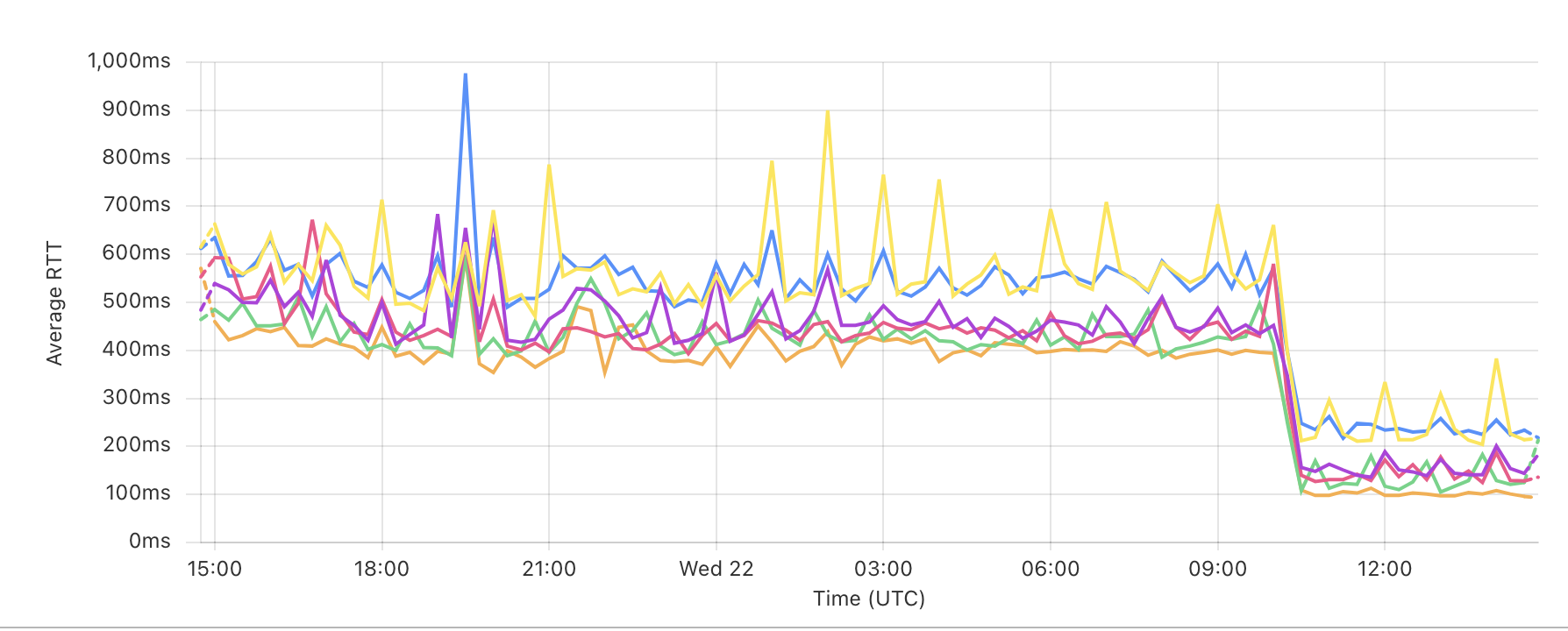 However, we were experiencing latencies of approximately 300ms. This could be due to our servers being based in Singapore.